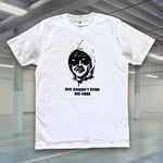 Printed Black on White tees. As stock levels fluctuate shirts will be subbed for a similar Colour, or sizes might be capped altogether.